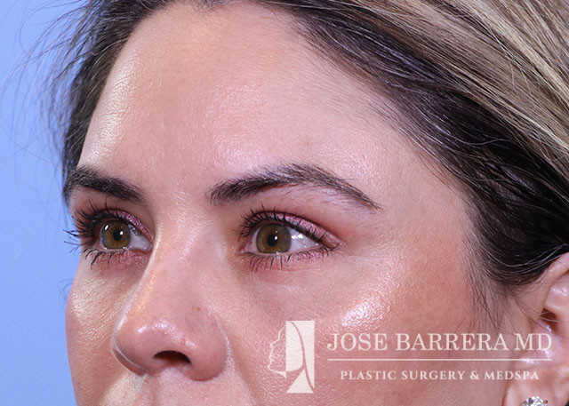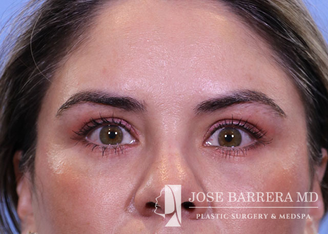 1 week after Minimal incision deep elevation (MIDE) midface and temporal browlift, necklift, lower bleph with fat transposition, and facial fat grafting