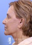 We then proceeded with the facelift and necklift. A submental incision made and a subcutaneous flap was developed extending from the inferior border of the mandible down to the thyroid cartilage and laterally to the angle of the mandible. Excess subcutaneous fat was sharply excised and the platysma was identified. Opposing platysmal flaps were identified and dissected medially. A right tension band was incised and released. Separately there was prolapse of the left submandibular gland that was removed with bipolar cautery. The platysma was then reapproximated using 4-0 PDS suture the in infra hyoid region. The suprahyoid platysma was the imbricated in the submental region with a interrupted 4-0 PDS.