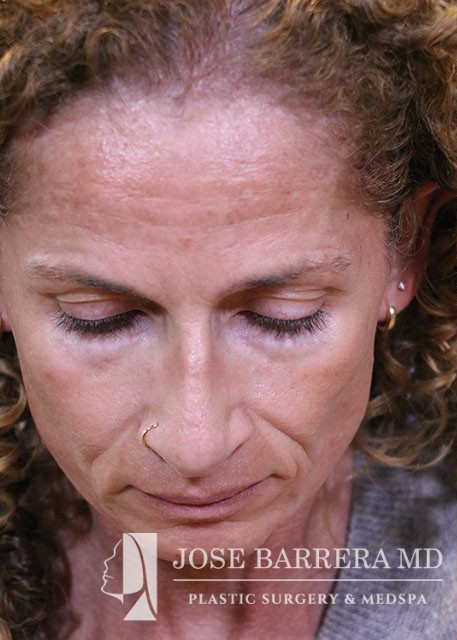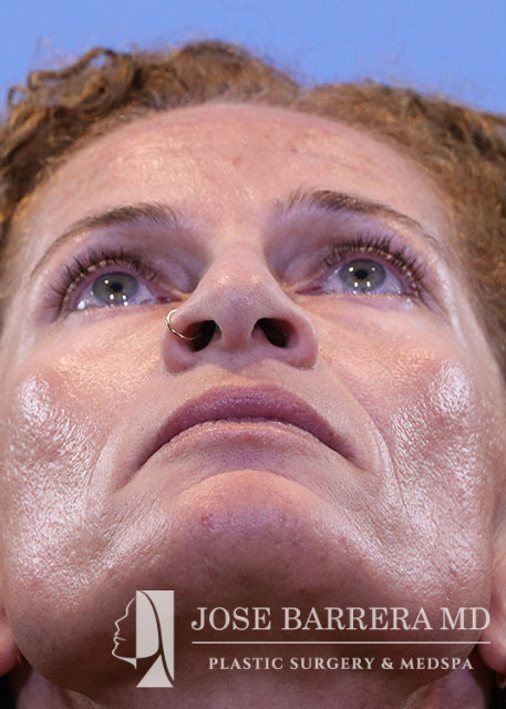 1 mo s/p preservation rhino with R SEG, L ANSA, R autospreader, R let down, L pushdown, complete z flap, medial crural overlay, LCSG, cephalic and caudal trims. endoscopic browlift