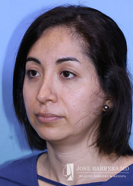 Left Otoplasty, Revision Rhinoplasty, Septoplasty, Costal Cartilage Grafting, Bilateral Lateral Crural Strut Grafts, Right SEG, DCGG with Temporalis Fascia. The patient had evidence of previous preservation rhinoplasty with modified Cottle technique.