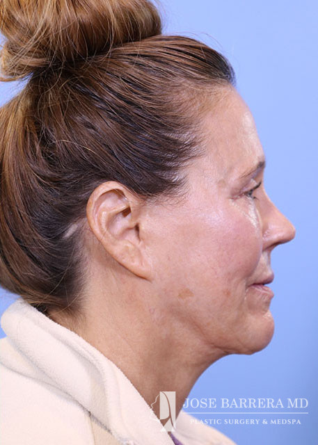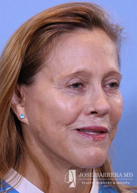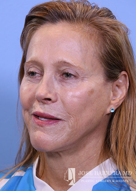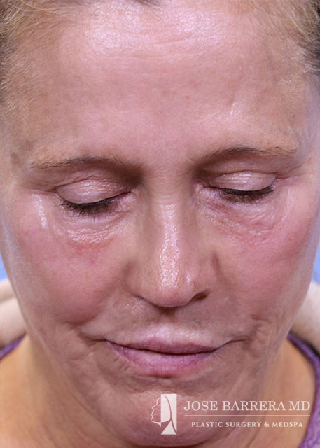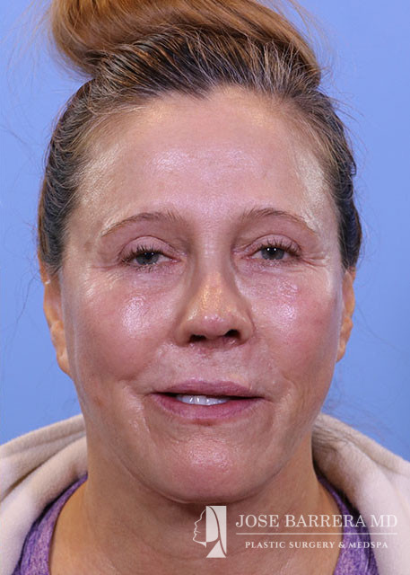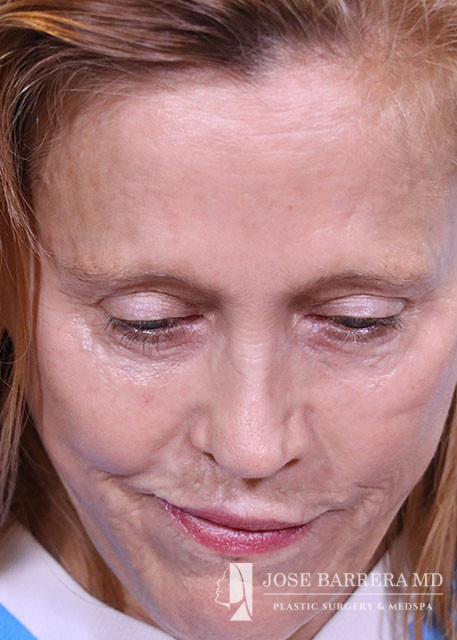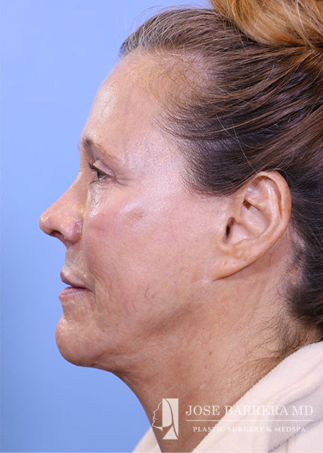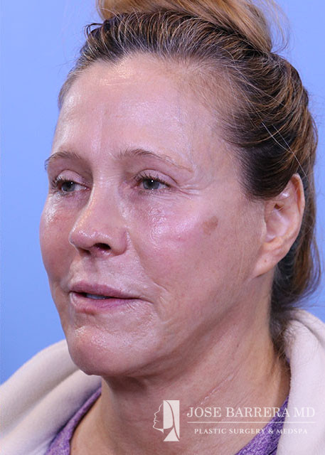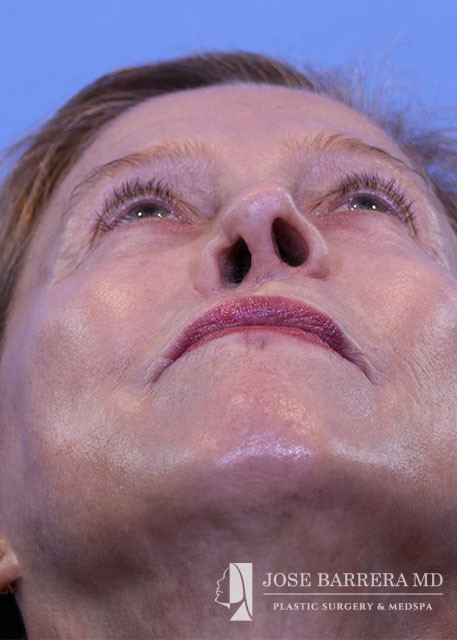 Revision rhinoplasty (Bilateral spreader grafts L>R, Bilateral lateral crural strut grafts, bilateral alar rim grafts, R alar base plumping graft, columellar plumping graft, CSEG, Diced cartilage onlay graft with PRFM, Temporalis tip graft, nanofat onlay with PRP), Septoplasty, Bilateral turbinate reduction with outfracture, Inner thigh Fat Harvest and Facial Fat Grafting 40cc total (A frame deformity, tear trough, hollow temples, melolabilal, alar base, marionette, cheeks, upper lip, and jaw line), temporalis fascia graft, PRP, and PRFM