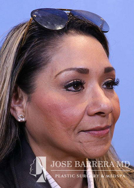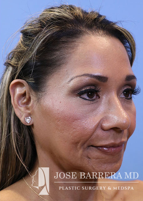 50 year old female 1 month s/p Joseph Rhinoplasty, Left costal septal extension graft, L spreader graft, R ANSA banner, bilateral let downs (L>R), lateral crural turn in flaps, supra tip graft